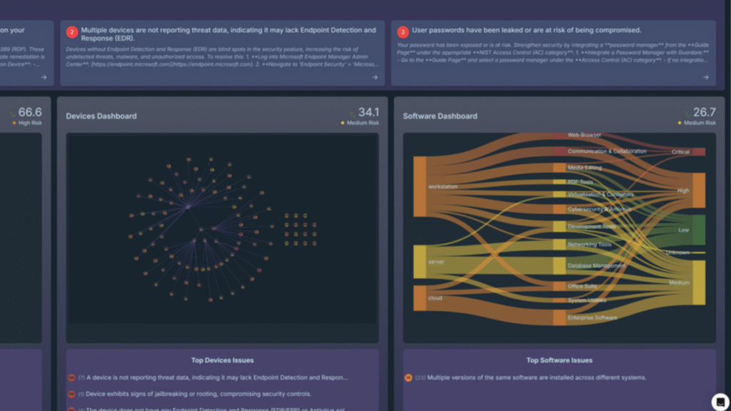 Rather than generating noise, Guardare highlights the risks that genuinely affect business resilience. Issues are prioritised based on exposure, likelihood and potential impact, enabling teams to focus effort where it delivers the greatest reduction in risk.